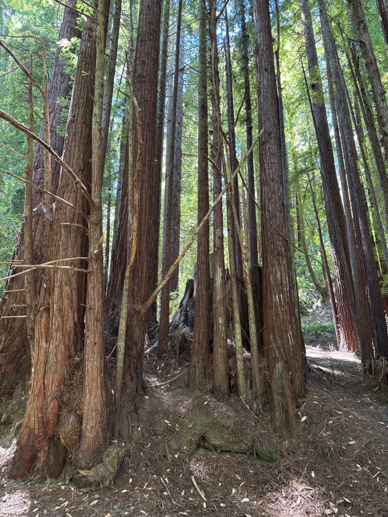 The hike out was one of quiet reflection. I hadn’t been in redwoods before this trip to California to be in the Grateful Dead 60th Anniversary festival at Golden Gate Park in San Francisco, and I found that they put me into a really contemplative mood. It was the same at US-1187 Portola Redwoods State Park, the trees are so large and so old that the ‘cathedral’ effect you read about really does happen, both visually as the trees arch up to the canopy, but in the feel of the place, too. Running into a Buddhist shrine in the middle of the woods added to that feel.