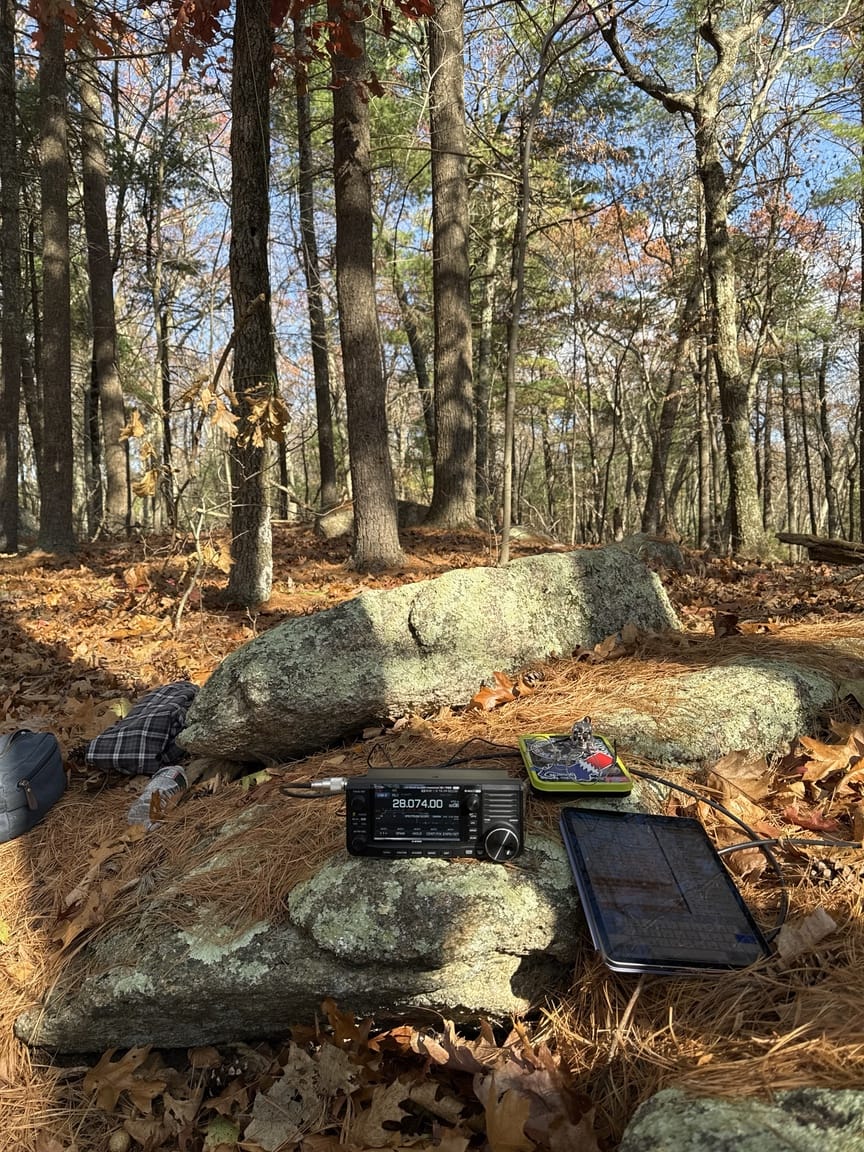 It was a quiet afternoon, just a few hikers waving hello and more than a few birds, who seem to love the sound of CW. I ate a sandwich in between calls and worked fifteen QSOs before hopping over the FT8 for a few. With this antenna I typically spend at least ten minutes on 6m FT8, just to check. Nothing today, but since I was there I made quick QSOs on 15m and 10m before wrapping things up. Six often surprises me, and while I don’t have a lot of 6m QSOs in the POTA log, I don’t have zero, either, which is progress, I think.