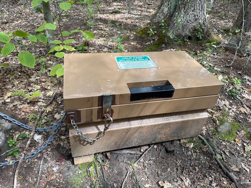 Every section of the AT that I’ve been on has its own personality. Here on the east side of Beartown I found quite a few AT campsites, some fancy like the shelter on the right, above, and some just a cleared area or a low platform. Many of these locations include a pit toilet and bear lockers (above, center) to store food in. As you might suspect given the name, black bears are frequent visitors to the campsites. At the trailhead kiosk there’s a sign-in sheet, and I noted that there were half a dozen hikers logged that day. As part of the AT, signage on the trail is frequent and helpful, and the trail itself is well-maintained here.