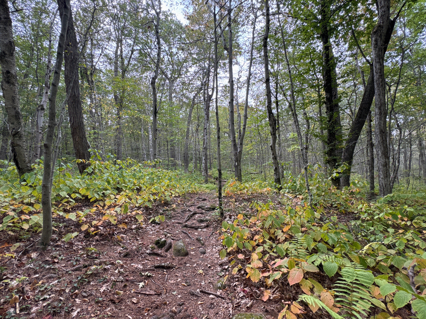 I have such mixed feelings about Beartown State Forest, located near Lee, Massachusetts, in the southwest corner of the state. I’ve been there twice now, once on a chilly March day, and again on a spectacular fall day in mid-September. I stay at the Holiday Inn Oak -n- Spruce Resort, a vacation time-share that also rents rooms by the night. I love it there, you can get a full-on townhouse style condo for under $90 per night (2025 prices) on Priceline. It’s just a few miles from groceries and a little downtown area with an outstanding cafe, The Starving Artist, and the kind of quaint shops you’d expect to see here in the Berkshires.