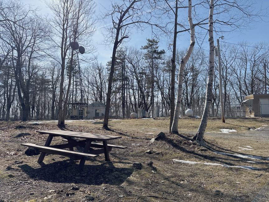 In spite of the active comm equipment, on both trips the bands were in good shape and the noise level low, and the activations went by quickly, in both cases using a KX2 feeding a 17′ whip. I remember in March being really psyched to see that picnic table, and I used it again in September. The summit marker is over near the building on the left, unfortunately all that is left is the bolt, like many markers this one has been stolen.