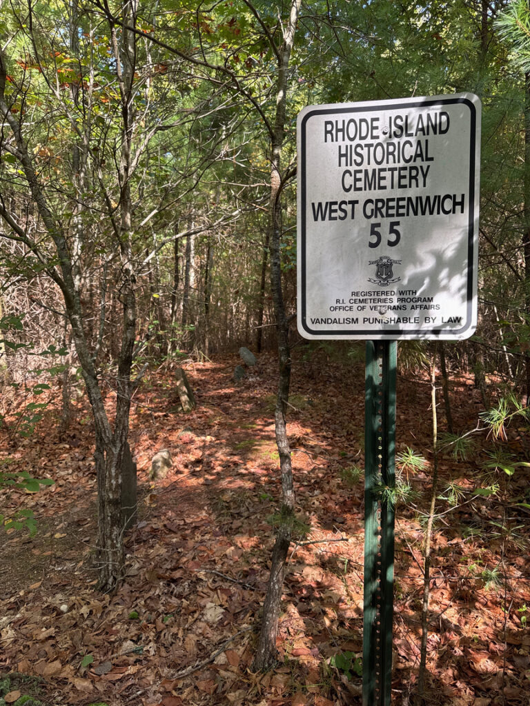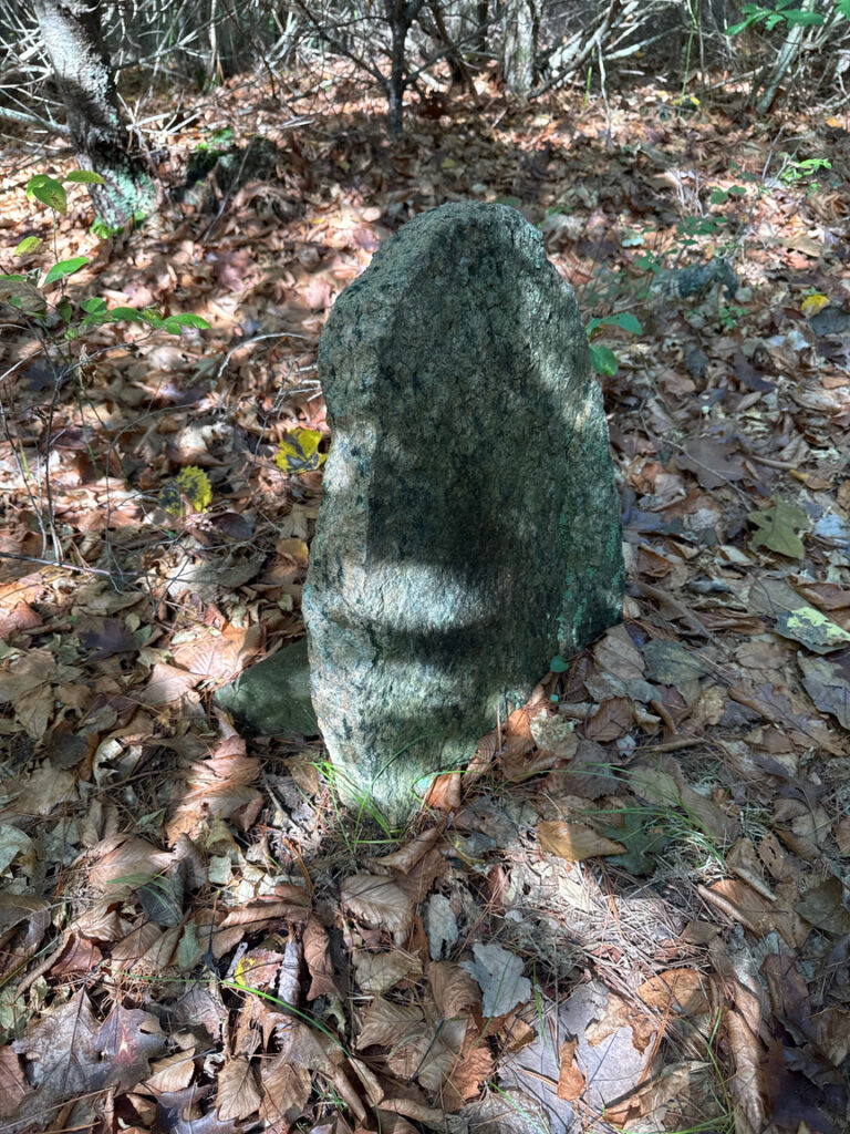 I’d parked in a cut along Hopkins Hill Road, from that spot a wide path led into the woods. Almost immediately there was evidence of human habitation — a tiny, ten-stone burial area on a small rise near Tarbox Pond.