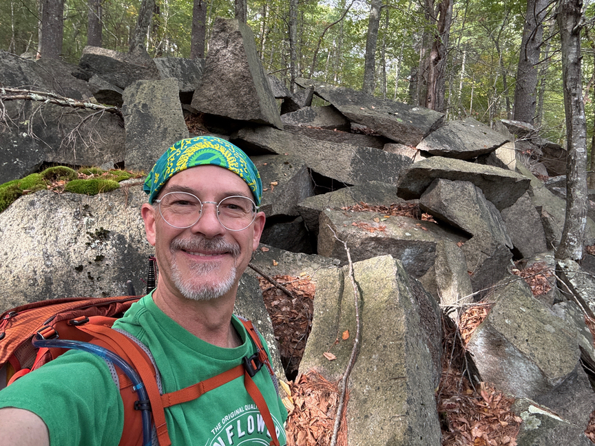 After about three hours I’d worked myself over to a high spot that looked like a good place to operate from. “High” is relative, this area of the park tops out at around 500 feet. A big granite boulder had split in some past aeon, and it provided for a nice little table and chair to set the station up on.