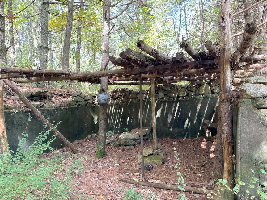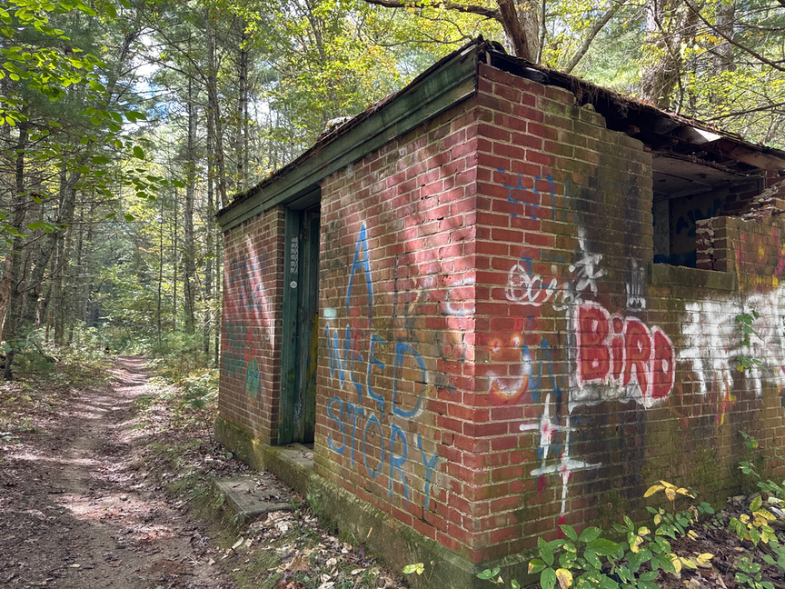 Above are three structure that I ran into on the trail. The brick building looked to be part of a rail system, either a through line or one built specifically to haul granite from the quarries to the construction site. The shelter in the center was deeper in the woods and likely in use as a hunting shack, all you need is a tarp across the top in case of rain. The house foundation on the right looked to be from the early 1900s.