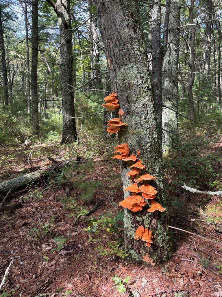 Just a reminder that late summer / early fall is mushrooming season in New England. These sulphurs in the photo below were not far from parking. Unfortunately they were just a bit old to eat, but I’d pulled a nice batch from US-8383 Wrentham State Forest a few days before, so we were flush with mushrooms.
