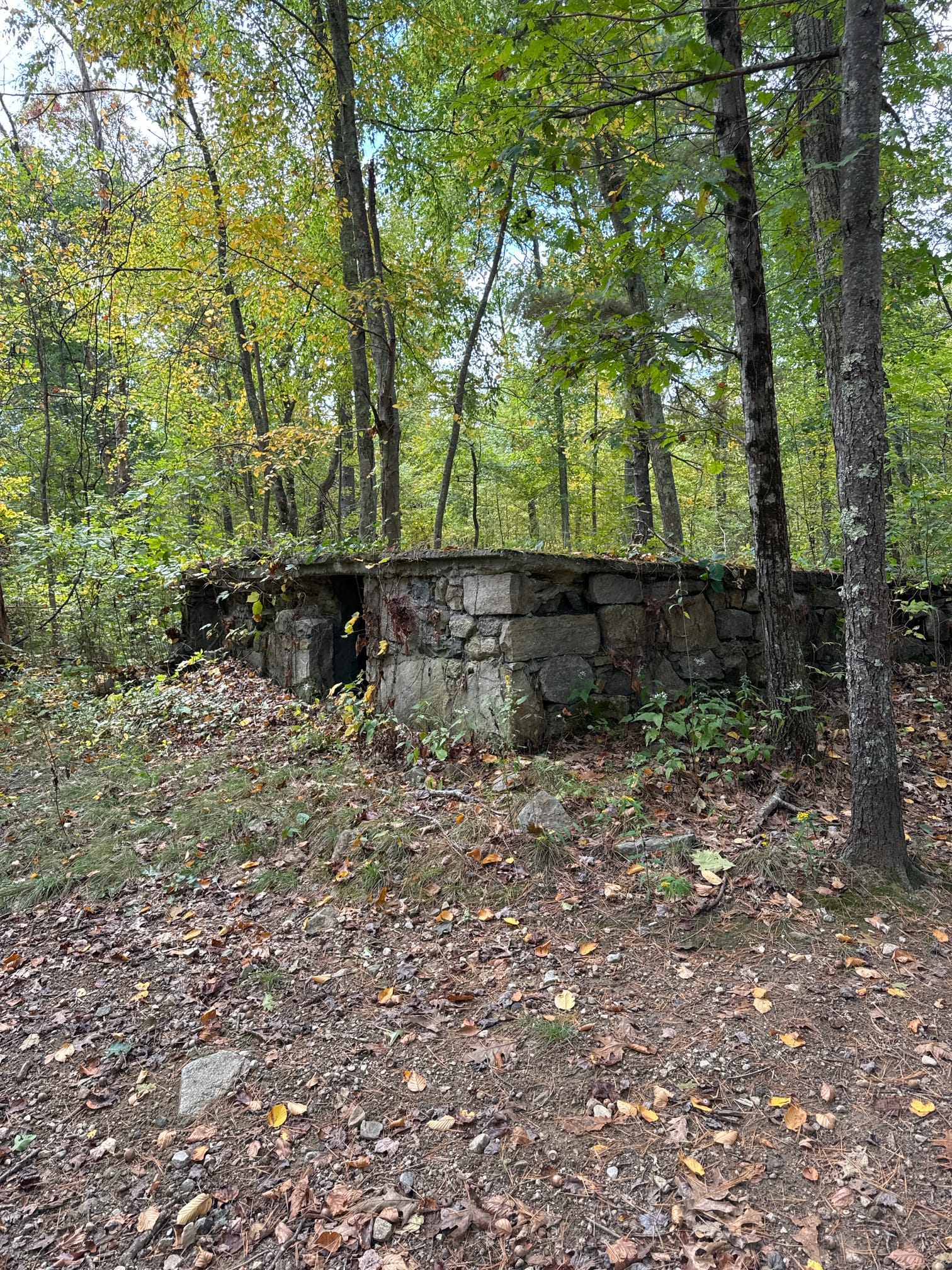Saturday’s excursion was to US-6984 Black Hut WMA tucked up around the northern border of Rhode Island, just east of Burrillville. It’s a very large area surrounding, but not including, Spring Lake, a popular summer ‘beach’ spot. At the trailhead there’s parking for about a dozen vehicles. I hiked in about 1.2 miles, looking for inspiration. Just over a mile in I ran into a cool abandoned dug-out building, it was empty inside but had a compact floor and a fireplace that had been recently used.